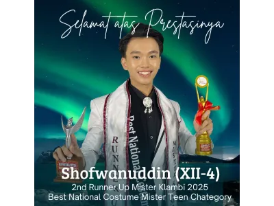 Selamat dan Sukses kepada : Ananda Shofwanuddin Kelas XII-4 berhasil meraih sebagai 2nd Runner Up Mister Klambi 2025 dan award Best National