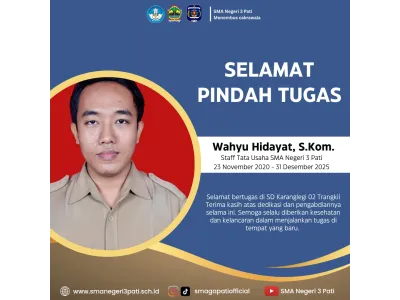 Keluarga Besar SMA Negeri 3 Pati mengucapkan : Selamat Pindah Tugas di SD Karanglegi 02 Trangkil Kepada Bp Wahyu Hidayat, S.Kom.(