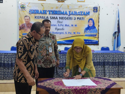 Sekilas info Yth. Bpk Ibu Assalamu'alaikum wr. wb. Alhamdulillah, acara Sertijab Kepala SMA Negeri 3 Pati, dari Plt. KS Lama: Bpk Kaslan, S.