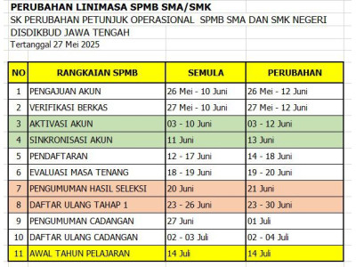 PERUBAHAN LINIMASA SPMB SMA/SMK SK Perubahan Petunjuk Operasional SPMB SMA & SMK Negeri Disdikbud Jawa Tengah Tertanggal 27 Mei 2025