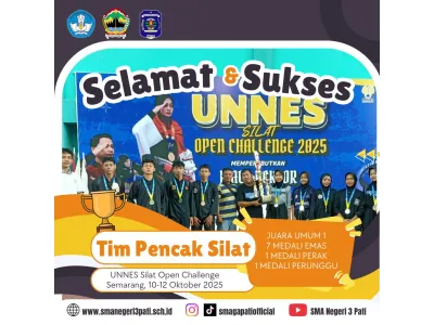 Selamat dan Sukses kepada : Tim Pencak Silat SMA Negeri 3 Pati berhasil meraih : Juara Umum I 7 Medali Emas 1 Medali Perak 1