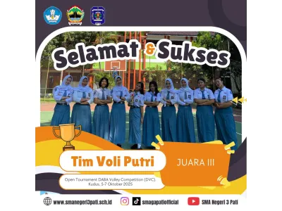 Selamat dan Sukses kepada : Tim Voli Putri SMA Negeri 3 Pati Meraih Juara III dalam Open Tournament DABA Volley Competition (DVC) Kudus, 5-7