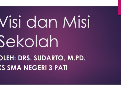 MATERI KEGIATAN MPLS TAHUN PELAJARAN 2021/2022:VISI DAN MISI SMA NEGERI 3 PATISenin, 12 JULI 2021Pukul 07.35-08.45 WIB(JAM KE 2)Oleh :