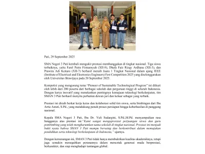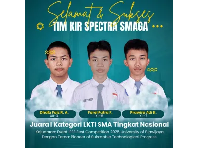 Keluarga Besar SMA Negeri 3 Pati mengucapkan Selamat & Sukses kepada : Tim KIR Spectra SMAGA : Ananda Dhafa Faiz R.A (