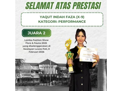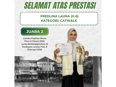 Smaga kembali berprestasi. selamat atas prestasi yang diraih kepada Ananda : FREDLINA LAURA ( X-6) KATEGORI : CATWALK meraih Juara 2 Lomba Fashion