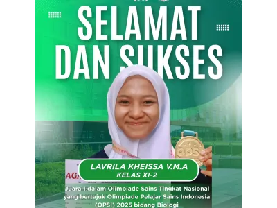 Keluarga Besar SMA Negeri 3 Pati mengucapkan Selamat & Sukses kepada : Ananda Lavrila Kheissa V. M. A Kelas XI-2 Juara 1 dalam