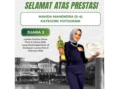 Smaga kembali berprestasi. selamat atas prestasi yang diraih kepada Ananda : MAHDA MAHENDRA ( X-4) KATEGORI : FOTOGENIK meraih Juara 2 Lomba Fashion