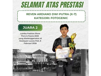 Smaga kembali berprestasi. selamat atas prestasi yang diraih kepada Ananda : REVEN ARDIANO DWI PUTRA ( X-7) KATEGORI : FOTOGENIC meraih Juara 2