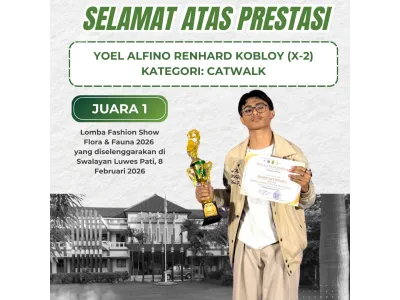 Smaga kembali berprestasi. selamat atas prestasi yang diraih kepada Ananda : YOEL ALFINO RENHARD KOBLOY ( X-2) KATEGORI : CATWALK meraih Juara 1