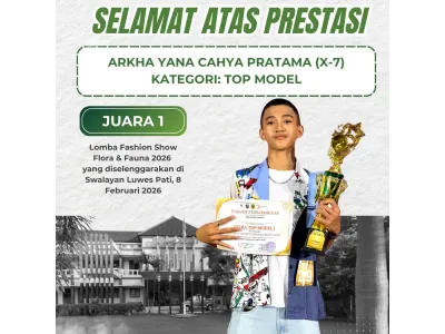 Smaga kembali berprestasi. selamat atas prestasi yang diraih kepada Ananda : ARKHA YANA CAHYA PRATAMA ( X-7) KATEGORI : TOP MODEL meraih Juara