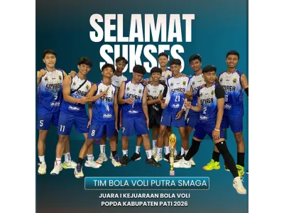 SMAGA JUARA teroos!!! Selamat atas prestasi yang diraih : Tim Bola Voli Putra SMAGA meraih Juara I Kejuaraan Bola Voli POPDA Kabupaten Pati 2026. Selamat