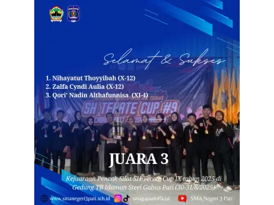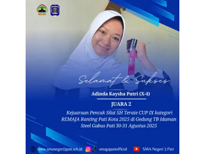 Keluarga Besar SMA Negeri 3 Pati mengucapkan Selamat & Sukses kepada: Ananda Adinda Kaysha Putri ( X- 4 ) Meraih Juara 2 dalam